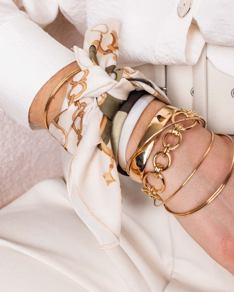 Comme un bijou qui scintille de mille feux, inspiré des trésors trouvés dans le cœur d’un coquillage, ce foulard incarne délicatesse et raffinement. Joliment porté autour du cou ou délicatement noué au Sac Mona, il ajoute une touche d'élégance à chaque tenue.